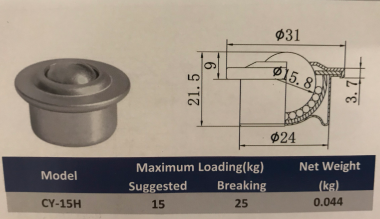 Thương hiệu: Chưa cập nhật | Ball transfer, bánh xe mắt trâu, bánh xe đa hướng, con lăn cầu, CY15H, CY 15H,