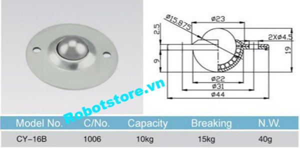Thương hiệu: Chưa cập nhật | Ball transfer, bánh xe mắt trâu, bánh xe đa hướng, con lăn cầu, CY16B, CY 16B,