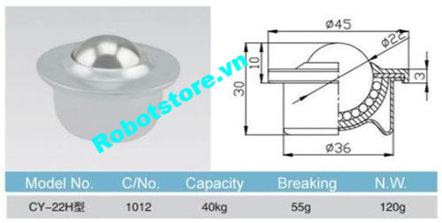 Thương hiệu: Chưa cập nhật | Ball transfer, bánh xe mắt trâu, bánh xe đa hướng, con lăn cầu, CY22H, CY 22H,