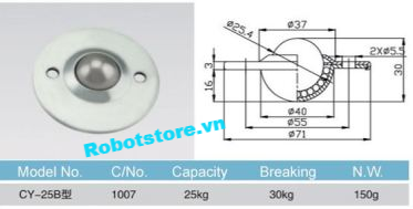Thương hiệu: Chưa cập nhật | Ball transfer, bánh xe mắt trâu, bánh xe đa hướng, con lăn cầu, CY25B, CY 25B,