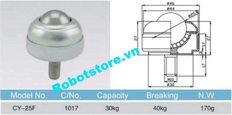 Thương hiệu: Chưa cập nhật | Ball transfer, bánh xe mắt trâu, bánh xe đa hướng, con lăn cầu, CY25F, CY 25F,