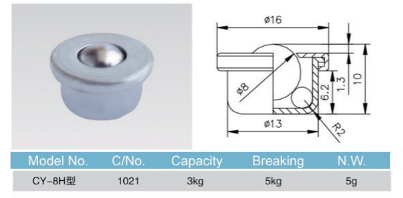 Thương hiệu: Chưa cập nhật | Ball transfer, bánh xe mắt trâu, bánh xe đa hướng, con lăn cầu, CY8H,