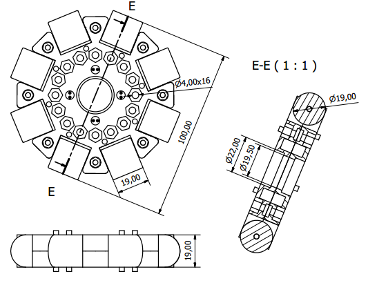 Trục nhôm nối động cơ với bánh xe omni 100mm
