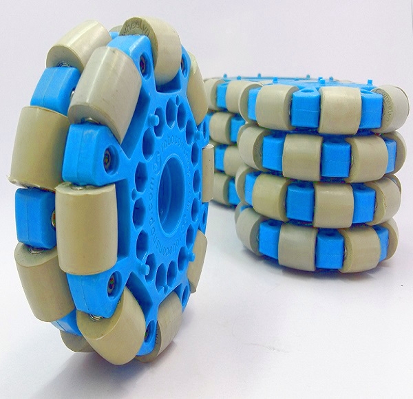 Bánh xe omni nhựa đường kính 100mm, có độ bền cao, có khả năng di chuyển linh hoạt.