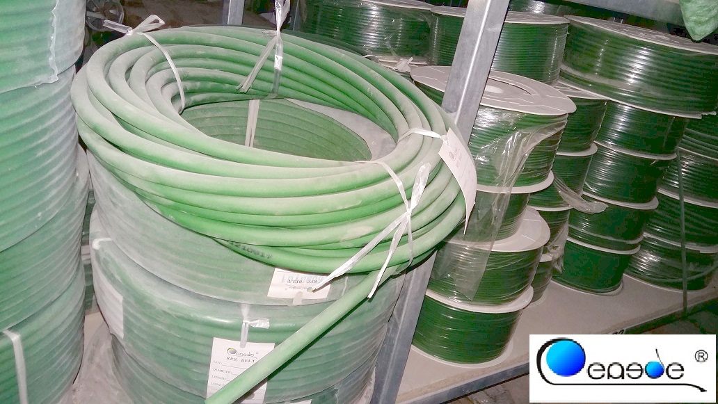 Được làm từ chất liệu Polyurethane, màu xanh, rất dẻo, dai và chống mài mòn tốt.