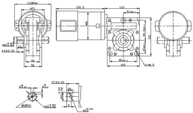 Động cơ 350w tốc độ 150 vòng/phút giảm tốc hệ số 50:1 momen xoắn 22.5Nm