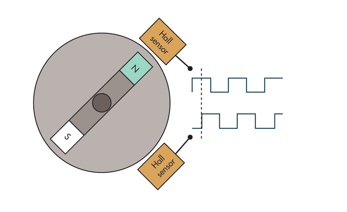 - Encoder: Hall sensor 13 xung, 2 kênh A B