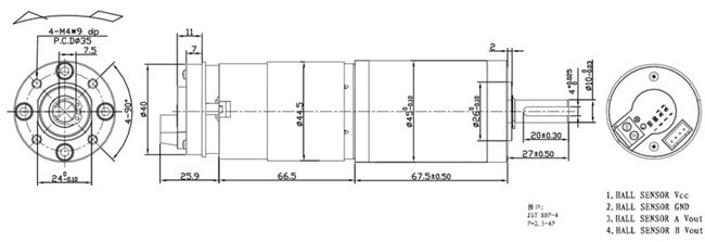 Động cơ Planet 24V 60w 35rpm encoder 13ppr