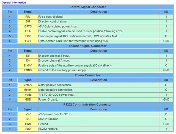 Over-current, over-voltage, phase error, encoder error, position following error protections